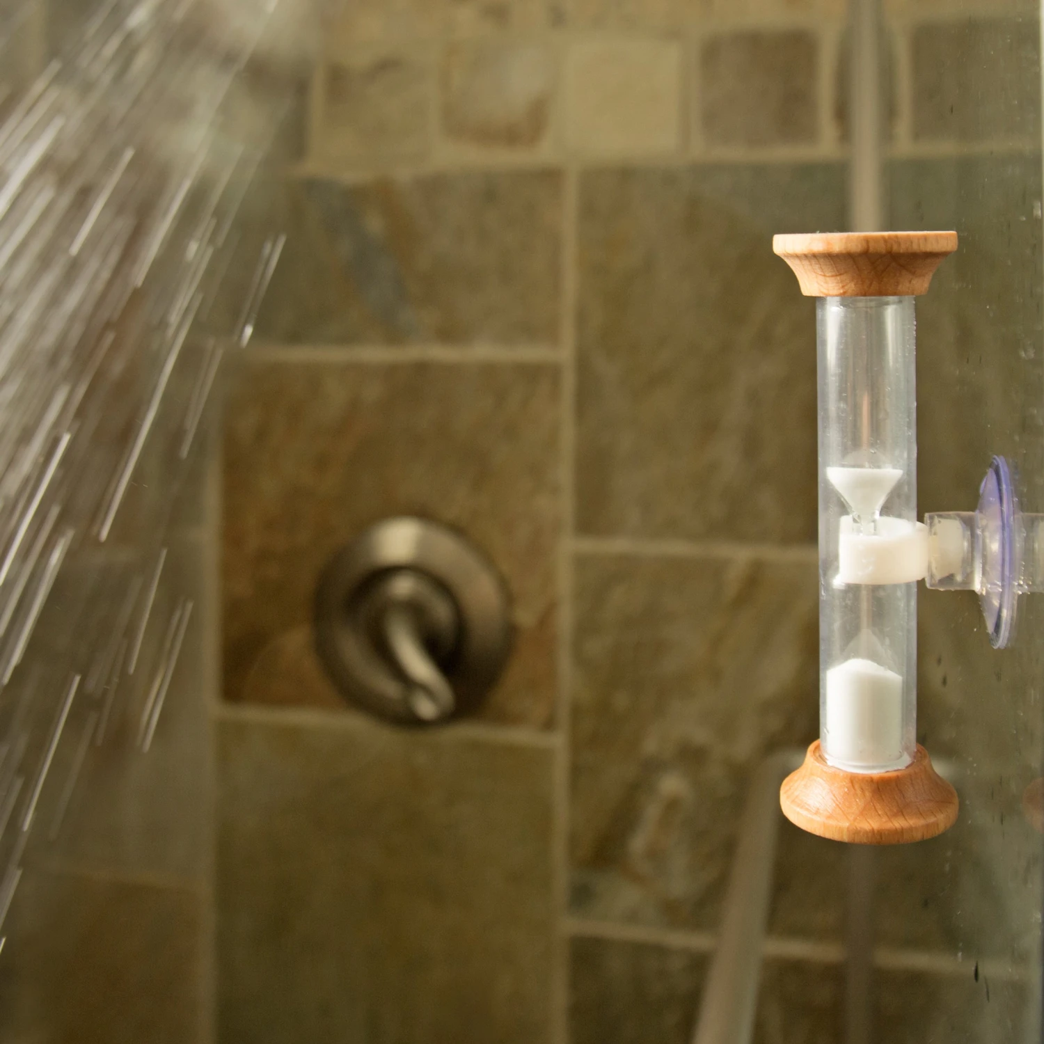 Save water, time & money. Each rotation of the timer equals 5 minutes. Detachable suction cup for easy installation on non-porous surface.