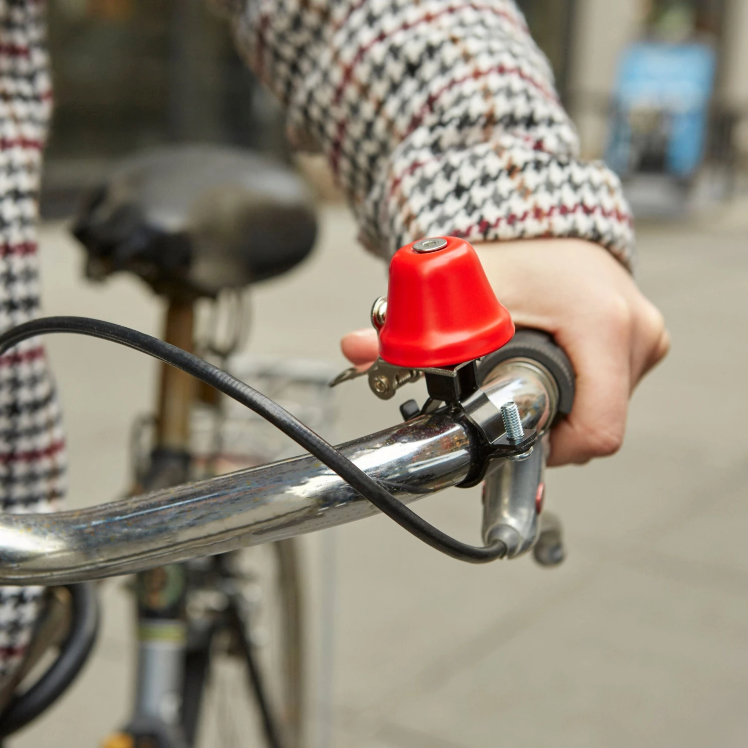 Classic bell shaped bike bell with thumb hammer.