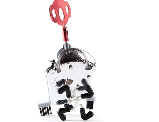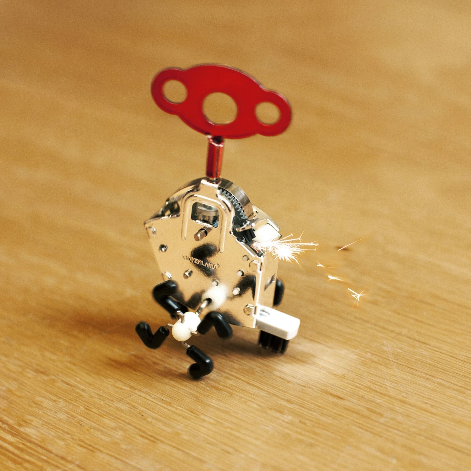 “Ping-Ling / Pang-Lang” is a term known in Hong Kong to describe life in a state of chaos and general confusion. Ping-Ling is an off spring of Sparklz and Awika and charged genetically by those two oddities of the mechanical world, so there is no way it could behave otherwise but in a state of mechanical confusion. Wind up Ping-Ling all the way without forcing the spring, and set it forth to its own discombobulation. As usual, we do not recommend allowing Ping-Ling to drop off fom the edge of tables. Please be gentle with it as life is sufficiently confusing for Ping-Ling just as it is under normal circumstances.