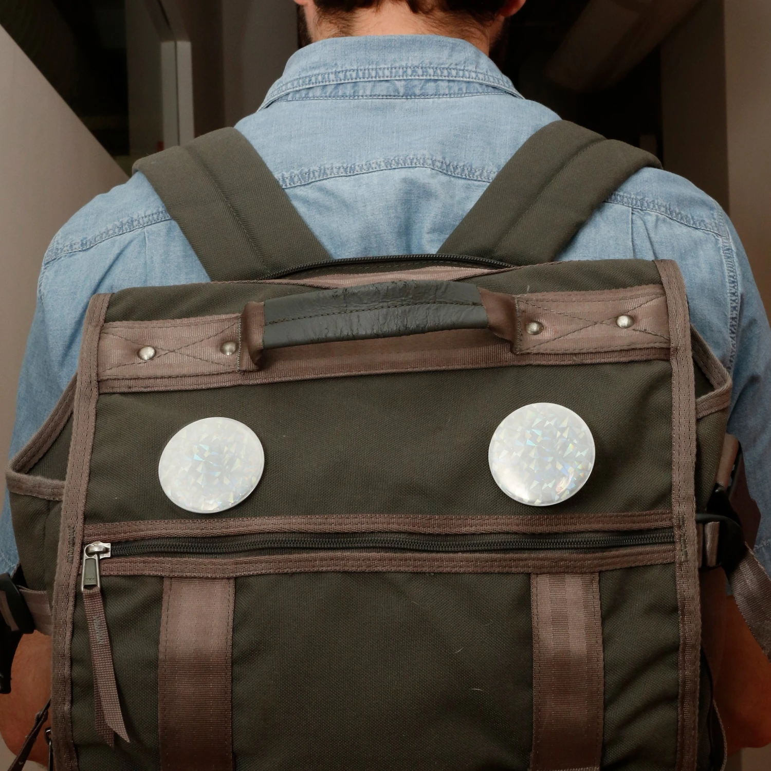 “Easy to PIN on and easy to see! Stay safe at night by simply pinning these reflectors to your clothes, bag or bike. Set of 2.”