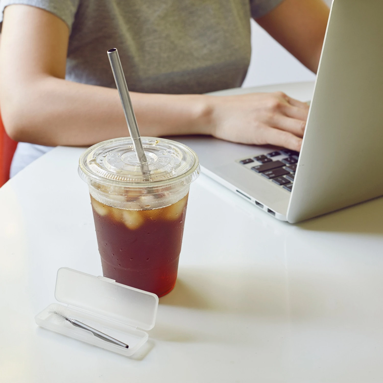 An eco-friendly, reusable alternative to plastic straws. Collapses into portable size. Includes cleaning brush and carrying case.
