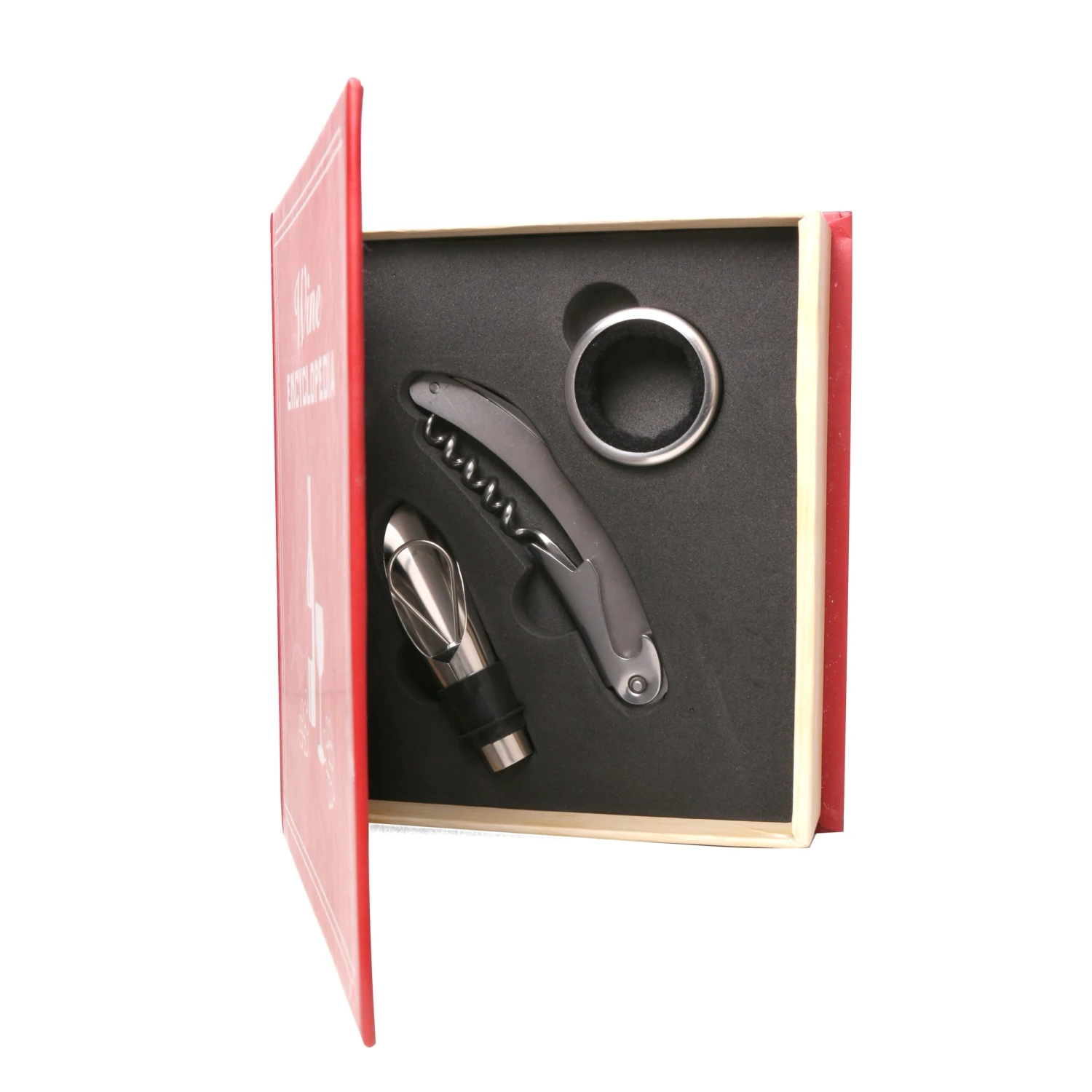 - Includes: corkscrew, pourer and collar.