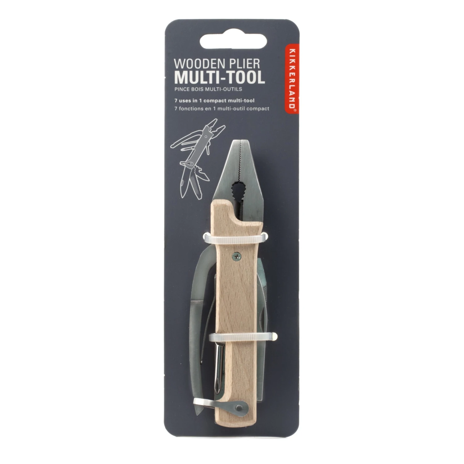 This multi-tool includes: Pliers, flat screwdriver, bottle opener, saw, file, philips head screwdriver, and knife.